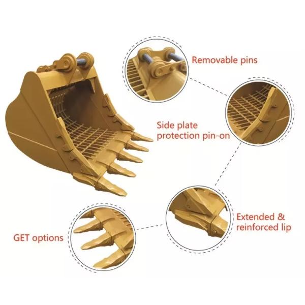 The Excavator Heavy Duty bucket is made of 16Mn steel, Chinese Q355b, with thicker plate and wearable parts( Bottom reinforced plates, side guard board, segments between bucket teeth. etc. ). It is available in a wide range of capacity and shape, according to customers' request. Our recommended application includes: volume loading for packed ground, tough clay, loose dirt and some mixture of rock (relevently harsh working condition).
